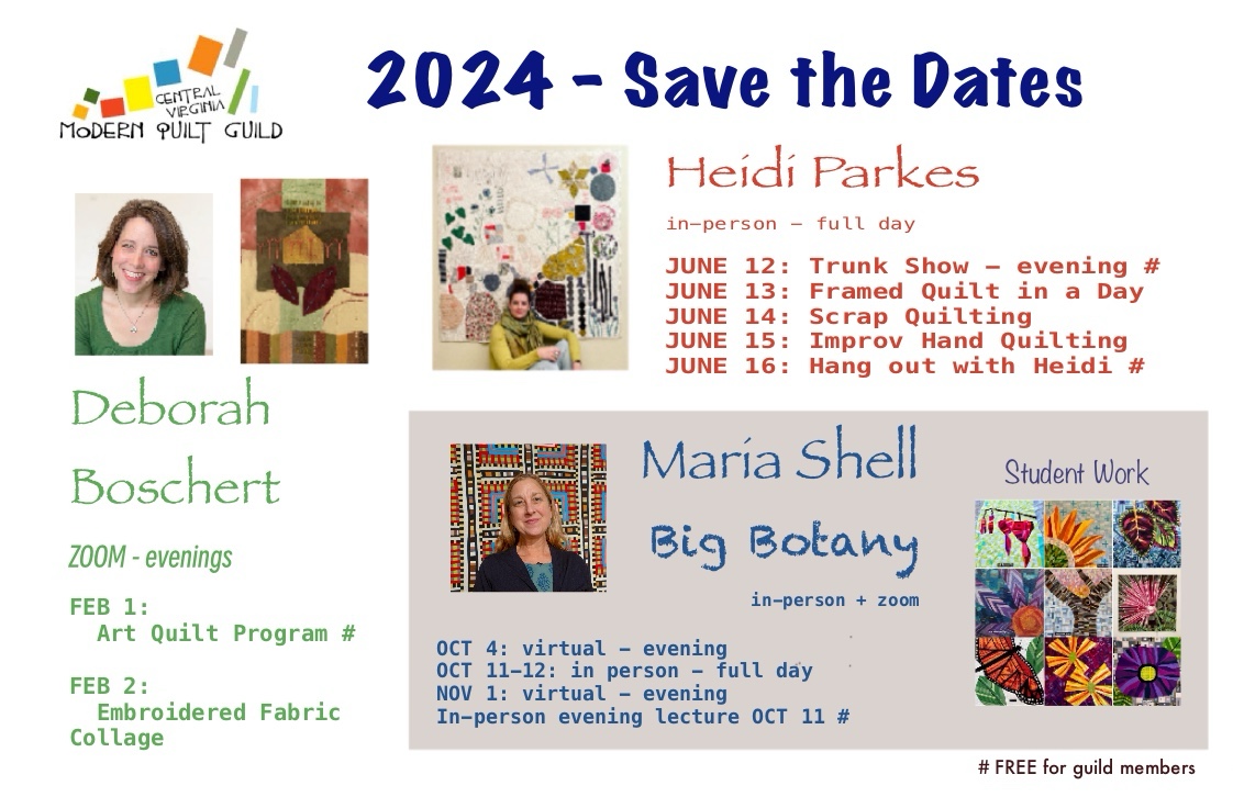 Mark your calendars for the Mid-Atlantic Quilt Festival – February 26- March 1, 2026 at the Hampton Roads Convention Center. The Guild will have quilts at the show.