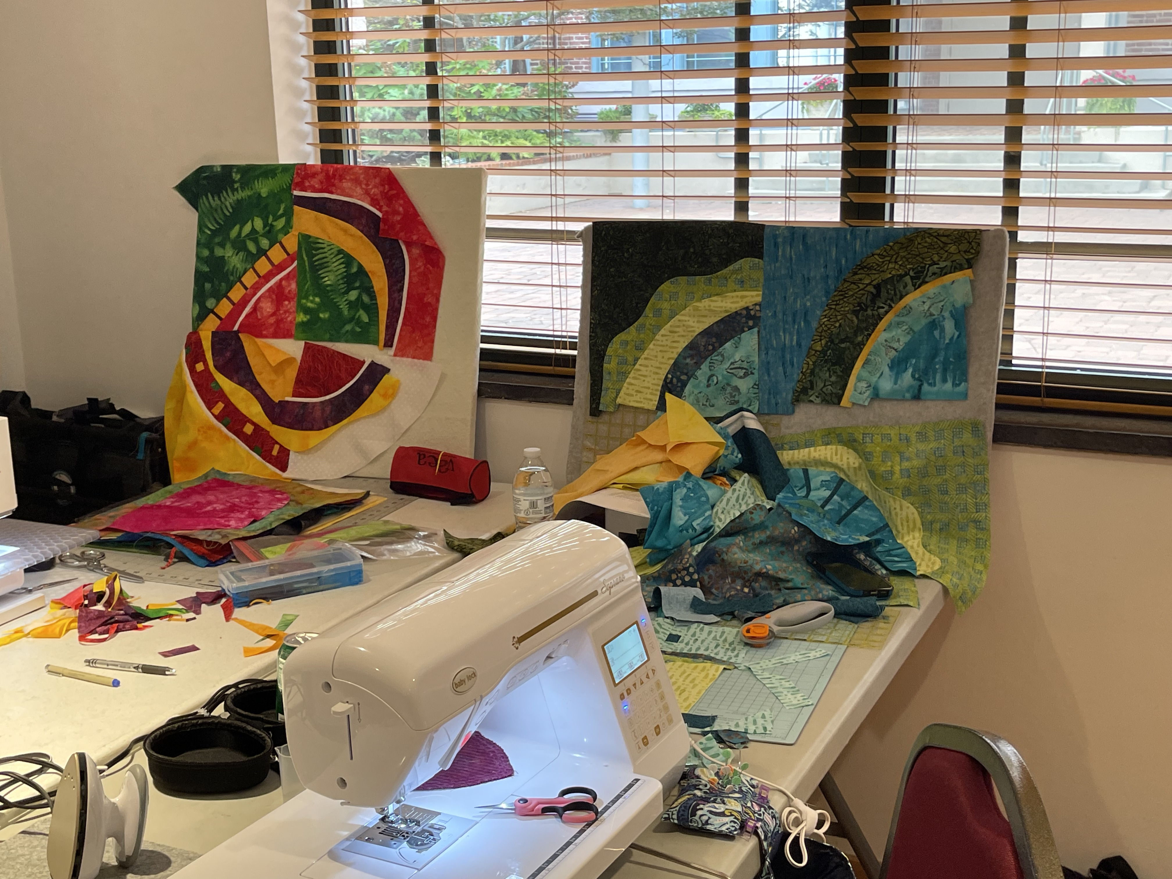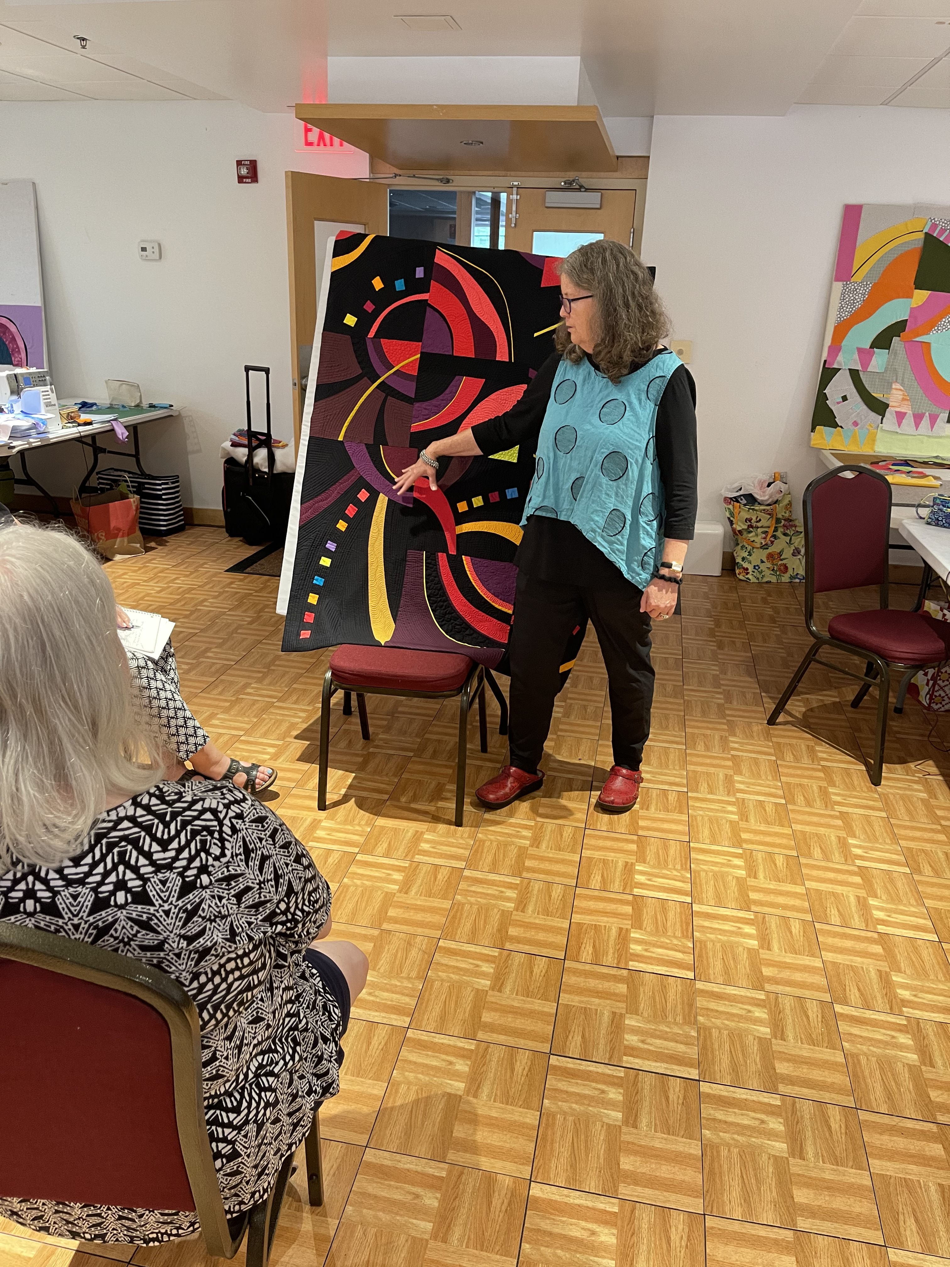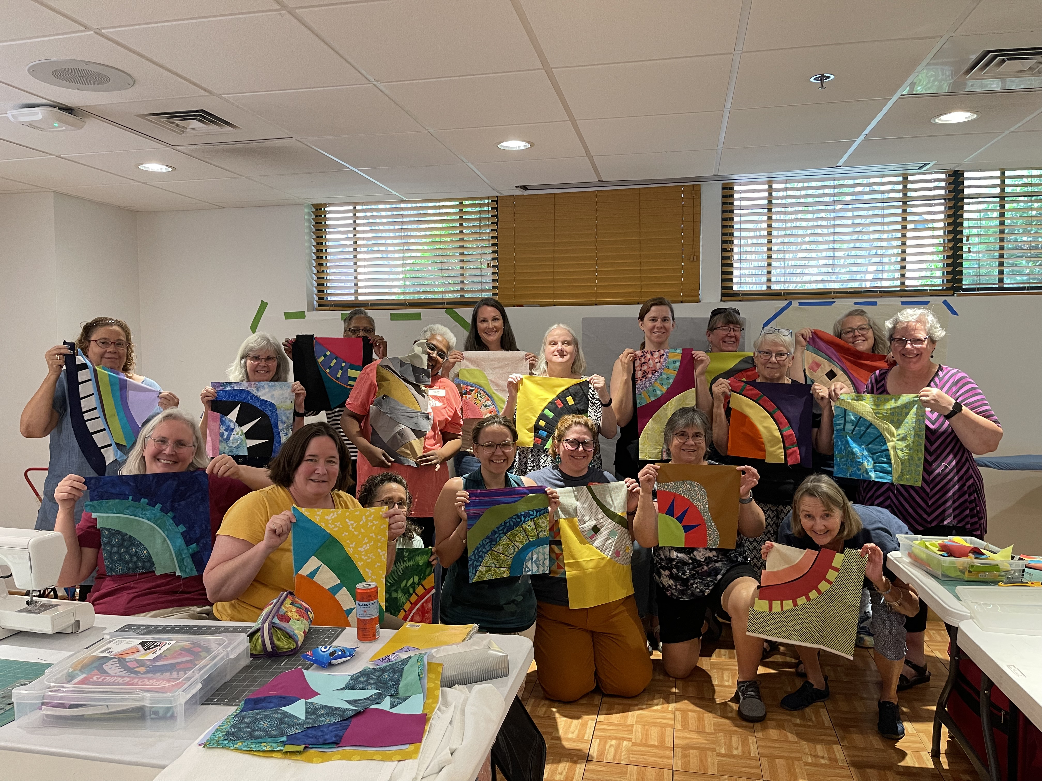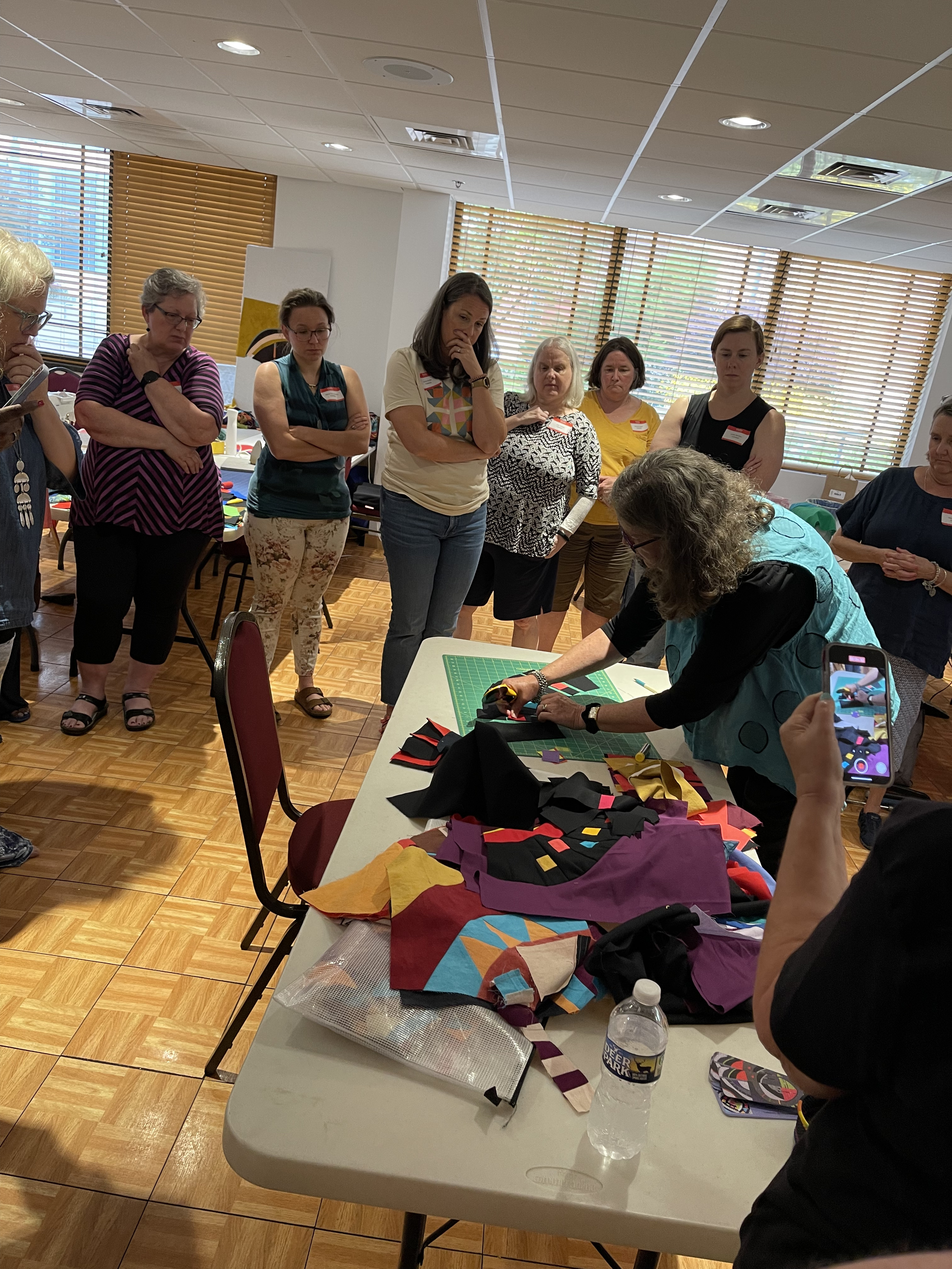 Yesterday’s hands on workshop with Cindy Grisdela was a success as can be seen by the wonderful blocks made by all participants! Cindy was an excellent instructor, encouraging everyone to explore improvisational techniques in their work to create interesting and original designs.