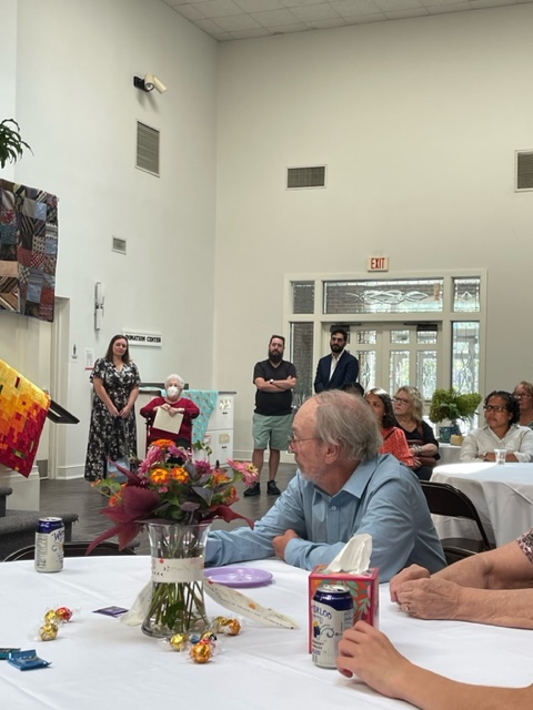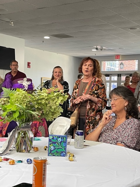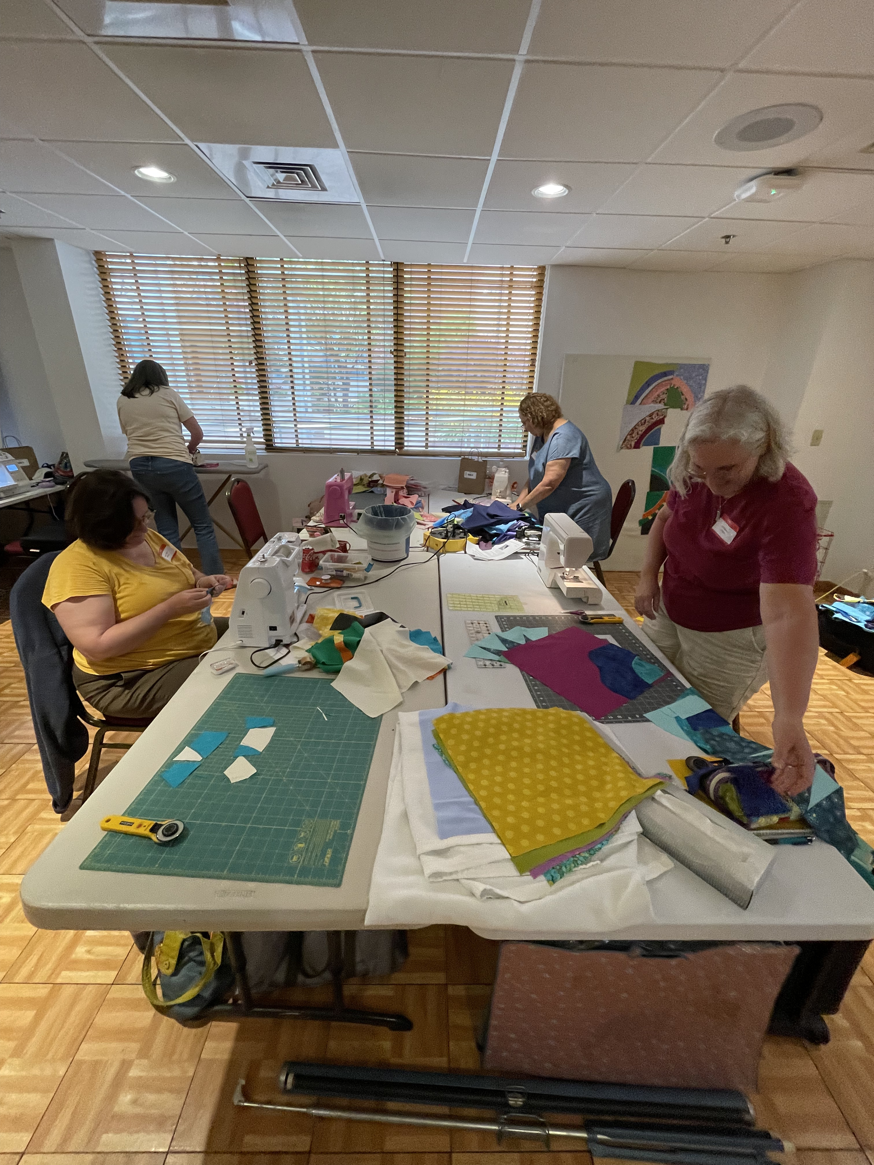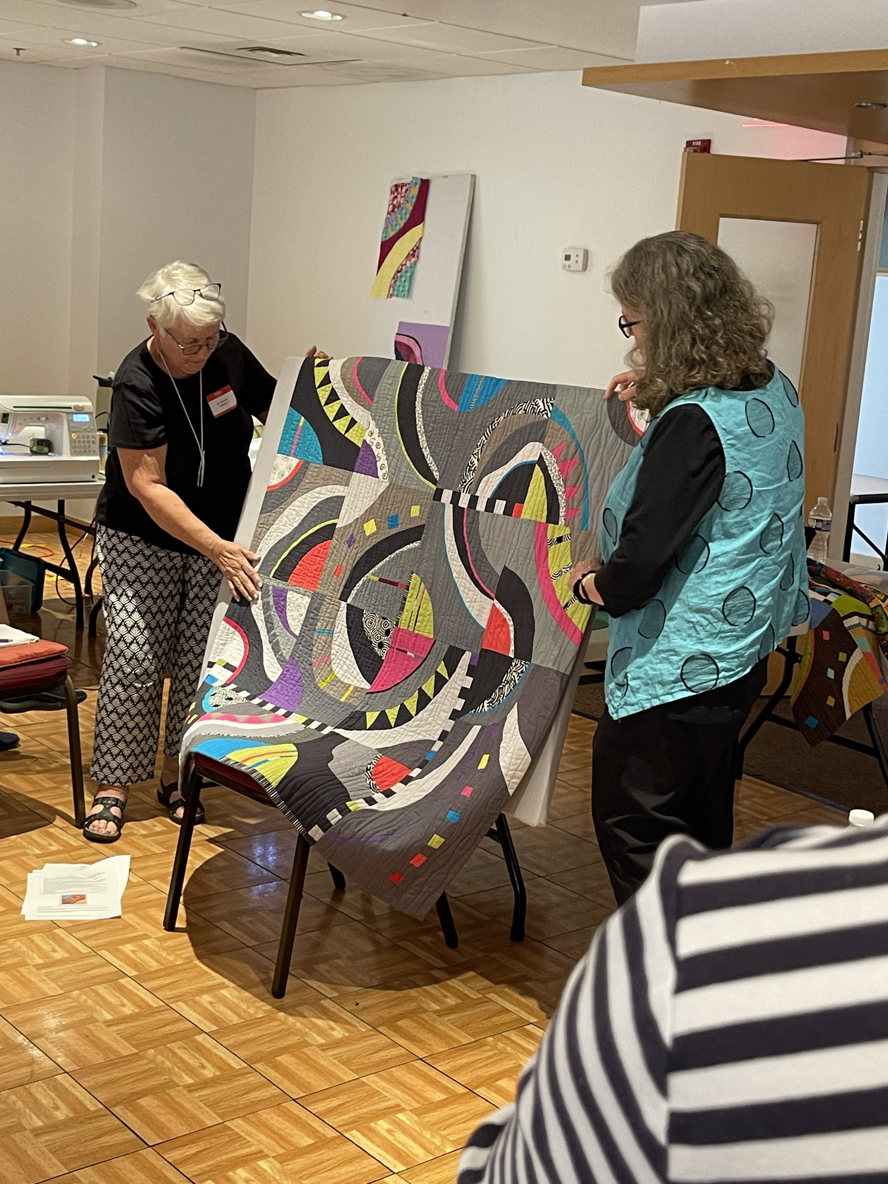 We spent yesterday afternoon celebrating the life of our dear friend and guild mate, Phyllis Mondak. She was known by everyone for her sense of humor, kindness, warmth and generosity of spirit. The Central Virginia Modern Quilt Guild is especially fortunate to have had her in it’s initial days when she opened up her quilt store to the Guild as a space to meet free of charge, just as she did with others. Her welcoming and encouraging spirit was conducive for many who were beginning their quilting journey. Her warmth and kindness made her feel like a friend to everyone who met her. She will be dearly missed.