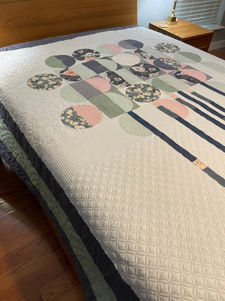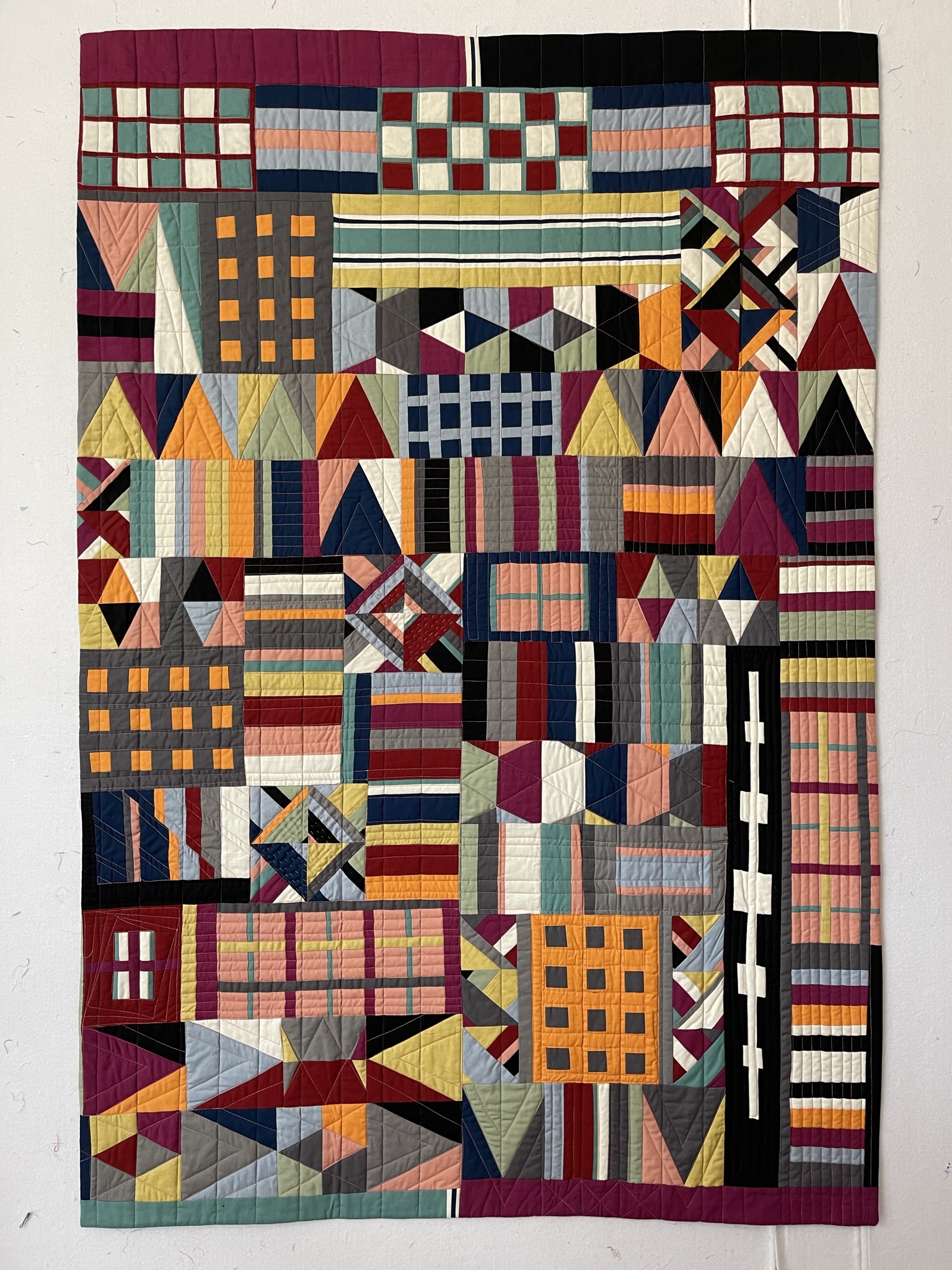 How long have you been quilting? I learned how to quilt when I was around 12, about 29 or 30ish years ago. I helped my dad hand piece and quilt a baby quilt for one of my cousins. I spent quite a bit of time sewing as a kid. I was a volunteer junior interpreter in Colonial Williamsburg ( costume, speeches, shoes with buckles and all) part of that program was lead by some wonderful women who had a sewing program. We would gather and sew together in traditional 18th century style while people toured the house I volunteered in. I learned how to sew a marking stitch sampler, design and stitch a pocket using crewel embroidery and made a bargello embroidered pin cushion. Then I went to VCUarts and graduated with a BFA in Craft and Material Studies with an emphasis on Fibers and spent the majority of my college career in the fibers studio quilting, printing, felting, weaving( not my favorite) and dying all day everyday.